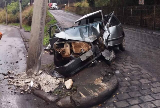 Na manhã deste sábado (08/11) por volta das 05h01min, o Serviço Voluntário de Resgate (SEVOR) foi acionado para atender um grave acidente de trânsito na altura do bairro Santa Cruz, próximo ao Depósito de Carvão. Um veículo de passeio colidiu frontalmente com um poste, resultando em uma mobilização imediata de várias equipes de emergência.