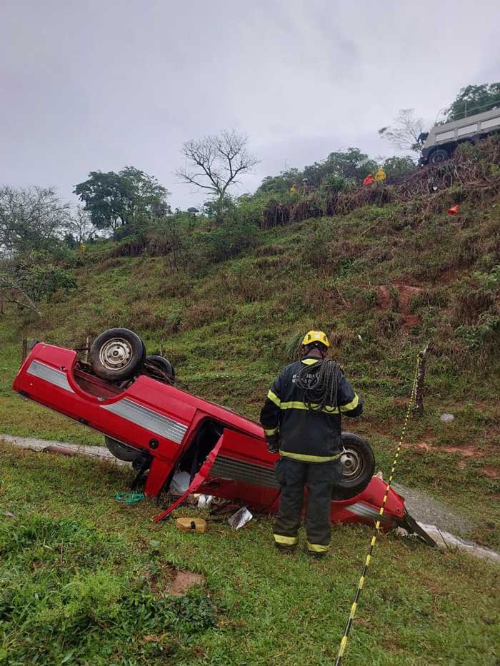 Após avaliação da cena, a equipe iniciou técnicas de desencarceramento para acessar o veículo e retirar a vítima. O trabalho contou com o apoio de funcionários e do guincho da concessionária Nova 381, que auxiliaram na remoção da picape da área de difícil acesso.