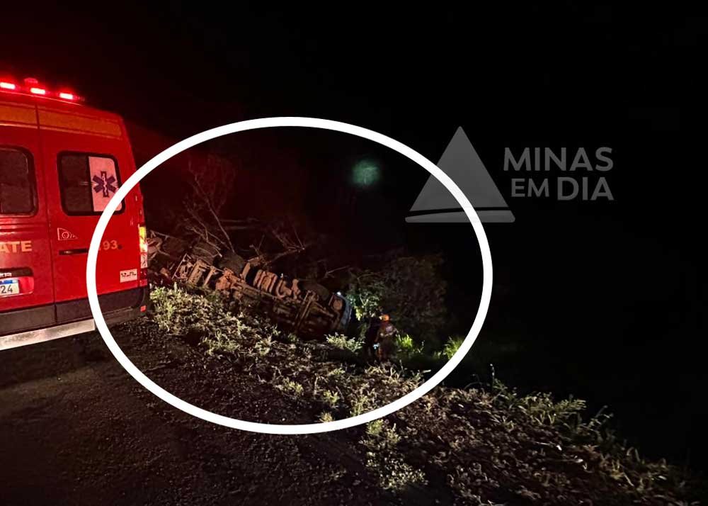 No local, segundo informações de testemunhas, o condutor de um caminhão Scania azul, com placa de São Sebastião do Paraíso, homem de 59 anos, seguia no sentido Monte Santo de Minas à São Sebastião do Paraíso quando, ao realizar uma curva à direita, perdeu o controle direcional do veículo, que tombou sobre a pista contrária, caindo em um barranco de aproximadamente quatro metros de profundidade.
