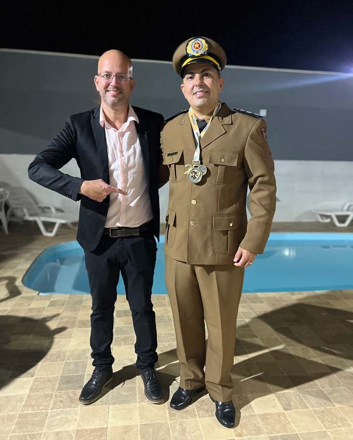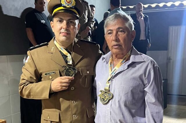 Ele foi homenageado ao lado de seu pai, Sargento Marcos, veterano da PMMG, gesto que simbolizou a continuidade de uma história familiar dedicada ao serviço militar e à proteção da sociedade mineira. Todos os homenageados receberam uma medalha comemorativa alusiva aos 250 anos da Instituição, destacando o reconhecimento da comunidade local pelo trabalho desempenhado pelos Policiais Militares.