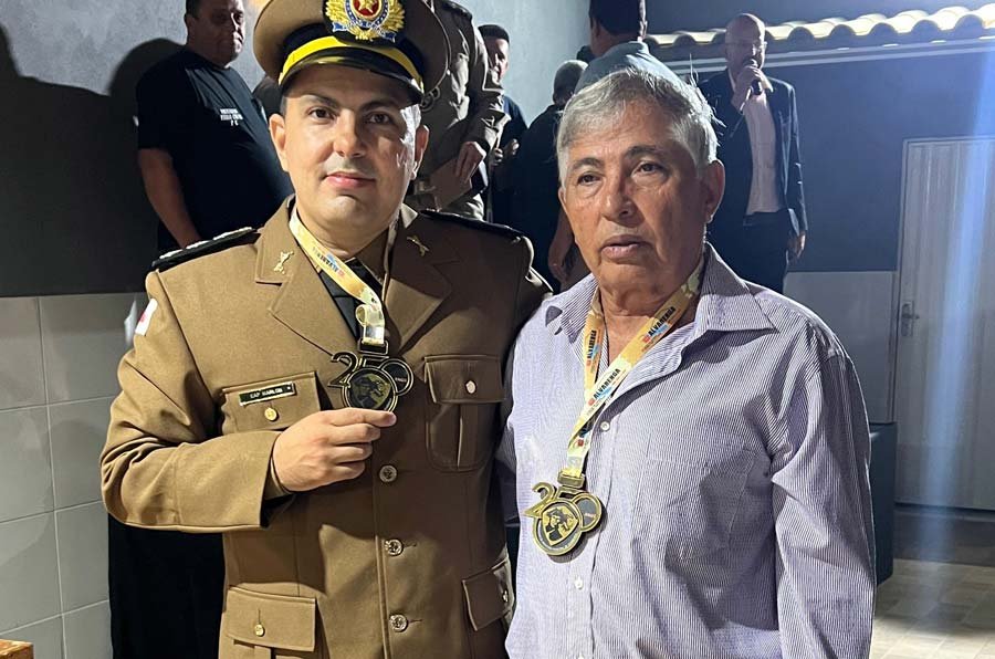 Durante o evento, foram homenageados militares da ativa e veteranos que já integraram o Grupamento Policial Militar de Alvarenga. Entre os agraciados, destacou-se o Capitão Marlon, que retornou à sua terra natal para receber a honraria.