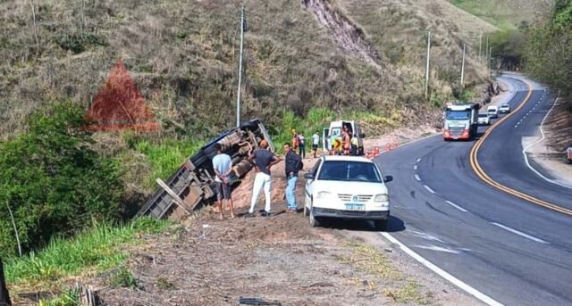 Uma carreta carregada com gado bovino tombou na manhã deste sábado (22/11) na BR-381, entre Nova Era e Antônio Dias, no sentido Ipatinga, logo após o trecho conhecido como Siribi. O acidente mobilizou equipes de resgate da Nova 381 e chamou a atenção de motoristas que passavam pelo local.