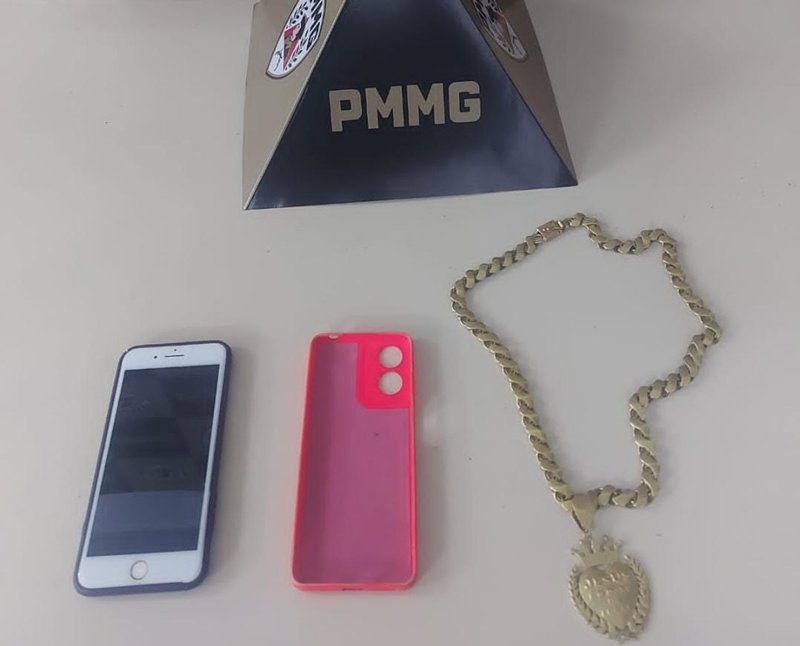 A dupla recebeu voz de prisão e foi conduzida à Delegacia de Polícia Civil. Entre os materiais recuperados estão um cordão dourado, um iPhone 8 Plus e a capa rosa utilizada no celular subtraído.