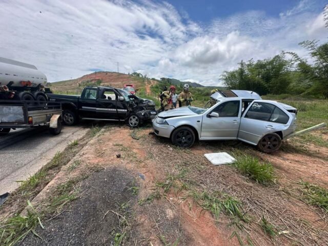 Uma grave colisão entre dois veículos deixou três pessoas mortas na manhã desta quarta-feira (03/12), por volta das 10h30, na BR-418, região do Caladão, em Carlos Chagas. Entre as vítimas fatais estão duas crianças e um homem.