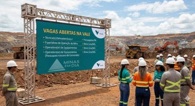 A Vale (VALE3) está com vagas de emprego abertas em diversas cidades brasileiras, contemplando áreas operacionais, técnicas, administrativas, engenharia, manutenção, tecnologia e programas de estágio. As oportunidades estão distribuídas em estados como Minas Gerais, Pará, Espírito Santo, Maranhão, Rio de Janeiro e São Paulo, reforçando o movimento de contratação da companhia em diferentes frentes de atuação.