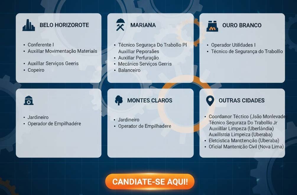 A Manserv, empresa especializada em soluções de infraestrutura e serviços industriais, está com um processo seletivo aberto para o preenchimento de dezenas de vagas de emprego em diversas cidades de Minas Gerais. Todas as posições são para contratação efetiva (CLT) e em regime presencial, com foco em período integral.