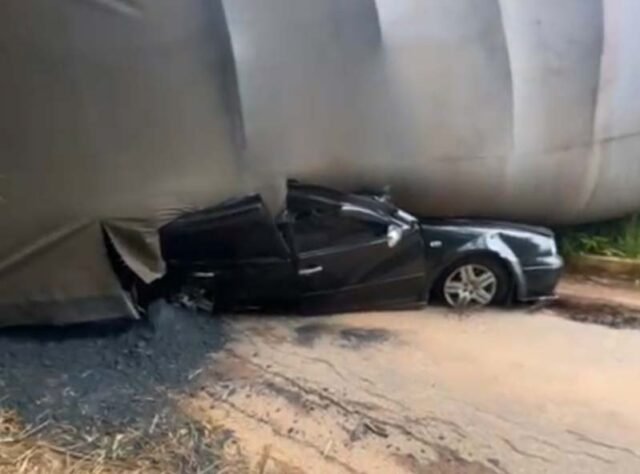 De acordo com informações do Corpo de Bombeiros, a carreta perdeu o controle direcional durante uma descida, vindo a capotar e tombar diretamente sobre o automóvel. Com o impacto, o carro de passeio foi completamente esmagado. A carreta parou com as rodas voltadas para cima, espalhando a carga pela pista.