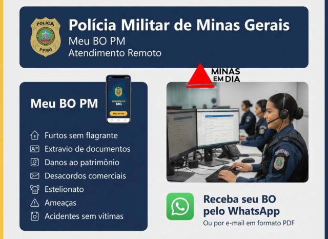 Nomeado de Meu BO PM, o novo serviço pode ser acionado pelo cidadão via 190 ou pelo Emergência MG, também disponível no MG App. Ao receber a ligação por meio do 190 ou aplicativo, o teleatendente irá conferir se a ocorrência se enquadra dentro das elegíveis para ser atendida pelo serviço de teleatendimento remoto e oferecerá a opção para o cidadão.