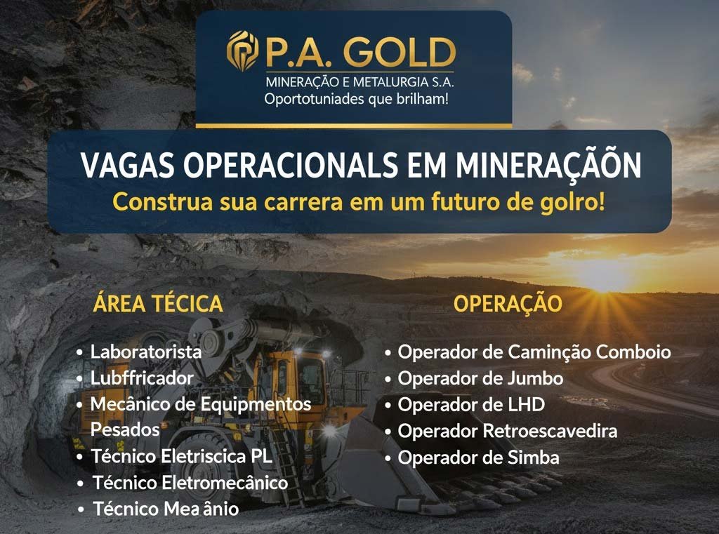 A P.A. Gold Mineração e Metalurgia S.A. anunciou a abertura de uma nova rodada de oportunidades de emprego, desta vez voltada para vagas operacionais, ampliando o quadro de colaboradores após a divulgação recente de posições de liderança.