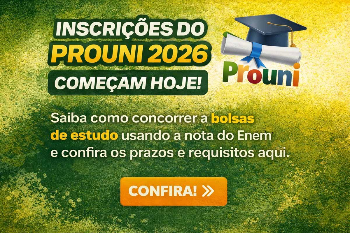 Começam nesta segunda-feira (26) as inscrições do processo seletivo para o primeiro semestre de 2026 do Programa Universidade para Todos (Prouni). O processo é gratuito e deve ser feito exclusivamente pela internet, por meio do Portal Único de Acesso ao Ensino Superior, até a próxima quinta-feira (29).
