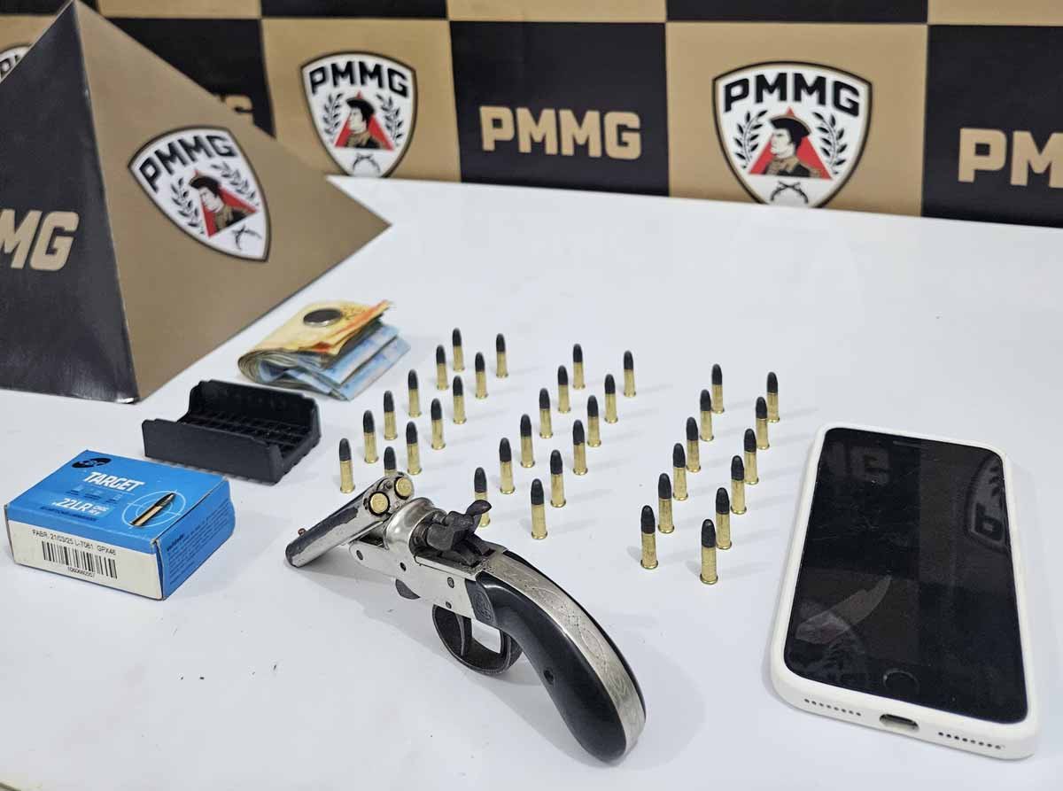 Durante a abordagem e busca pessoal, foi constatado que o autor portava uma garrucha calibre .22, municiada com duas munições. Em continuidade às buscas, foi localizada em sua posse uma caixa contendo outras munições do mesmo calibre, totalizando 38 munições apreendidas.