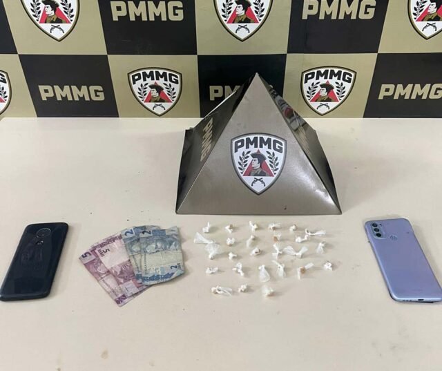 Durante rastreamento nas imediações, dois indivíduos foram abordados em atitude suspeita. Com um deles foi localizado entorpecente fracionado e com o outro quantia em dinheiro. Ambos foram presos em flagrante por tráfico de drogas.