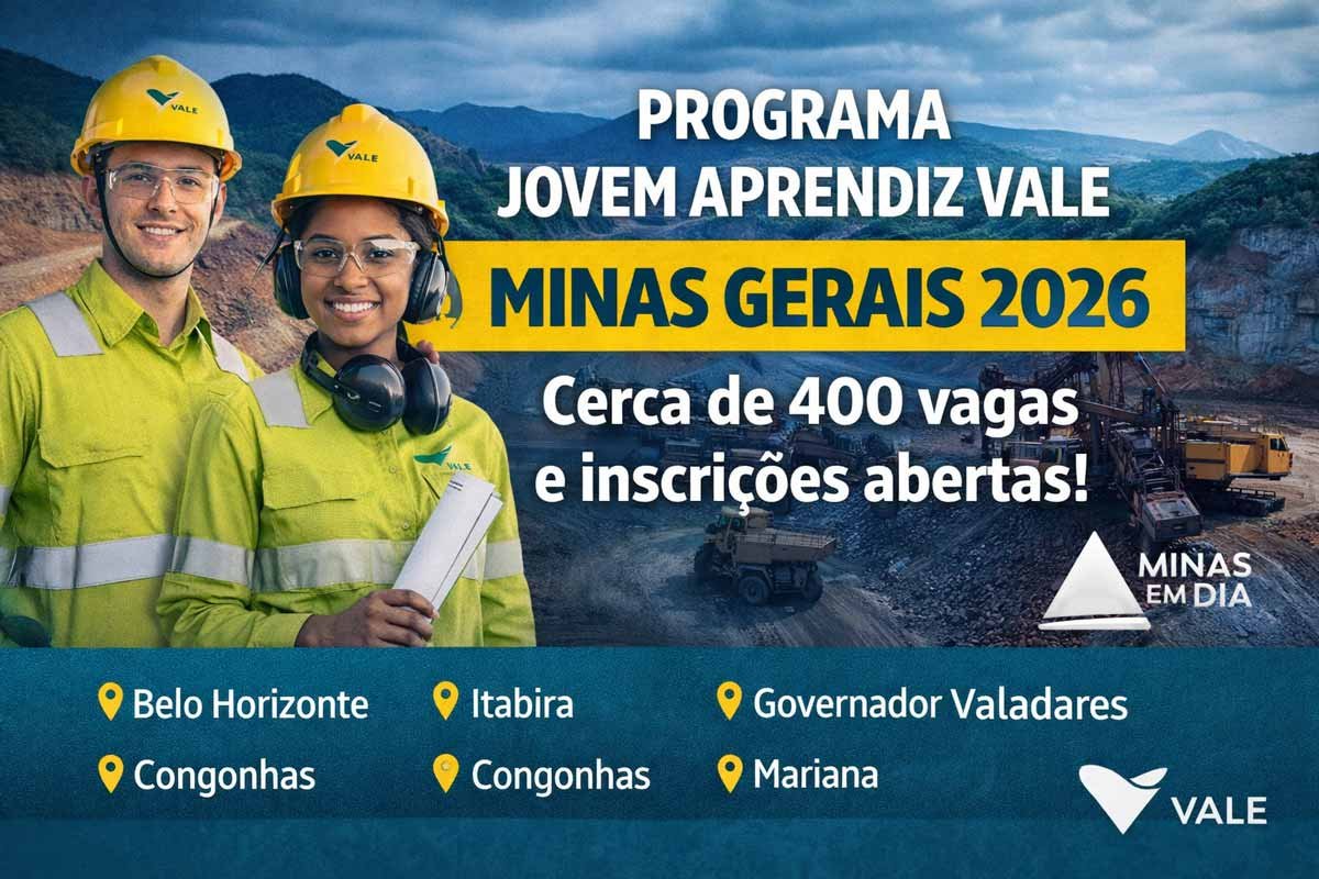 A Vale, em parceria com a consultoria MSA RH, detalhou o quadro de oportunidades para o Programa Jovem Aprendiz 2026 em Minas Gerais. O estado concentra um dos maiores volumes de vagas do programa, com foco em capacitação técnica para o setor de mineração e manutenção industrial.