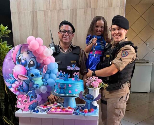 A Polícia Militar participou de uma comemoração de aniversário infantil e realizou uma surpresa especial para uma criança fã da corporação em Rio Piracicaba, na Região Central de Minas Gerais.