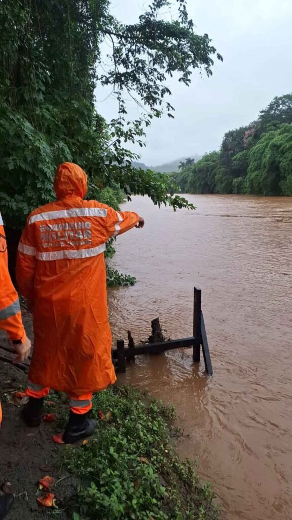 Segundo os militares, as fortes chuvas que atingem a região elevaram o nível do rio e aumentaram a turbidez da água, dificultando a localização do desaparecido. As equipes seguem realizando buscas sistemáticas ao longo do leito e das margens, em articulação com a Defesa Civil Municipal e a Polícia Militar.