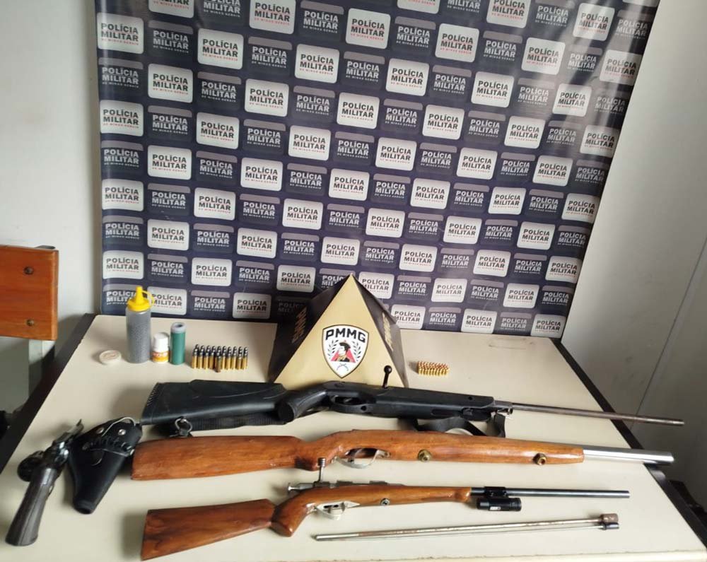 Ao todo, foram apreendidos um revólver calibre .38, duas espingardas calibre .22, uma espingarda de retrocarga, 30 munições calibre .38, 50 munições calibre .22, pólvora, chumbos e espoletas.