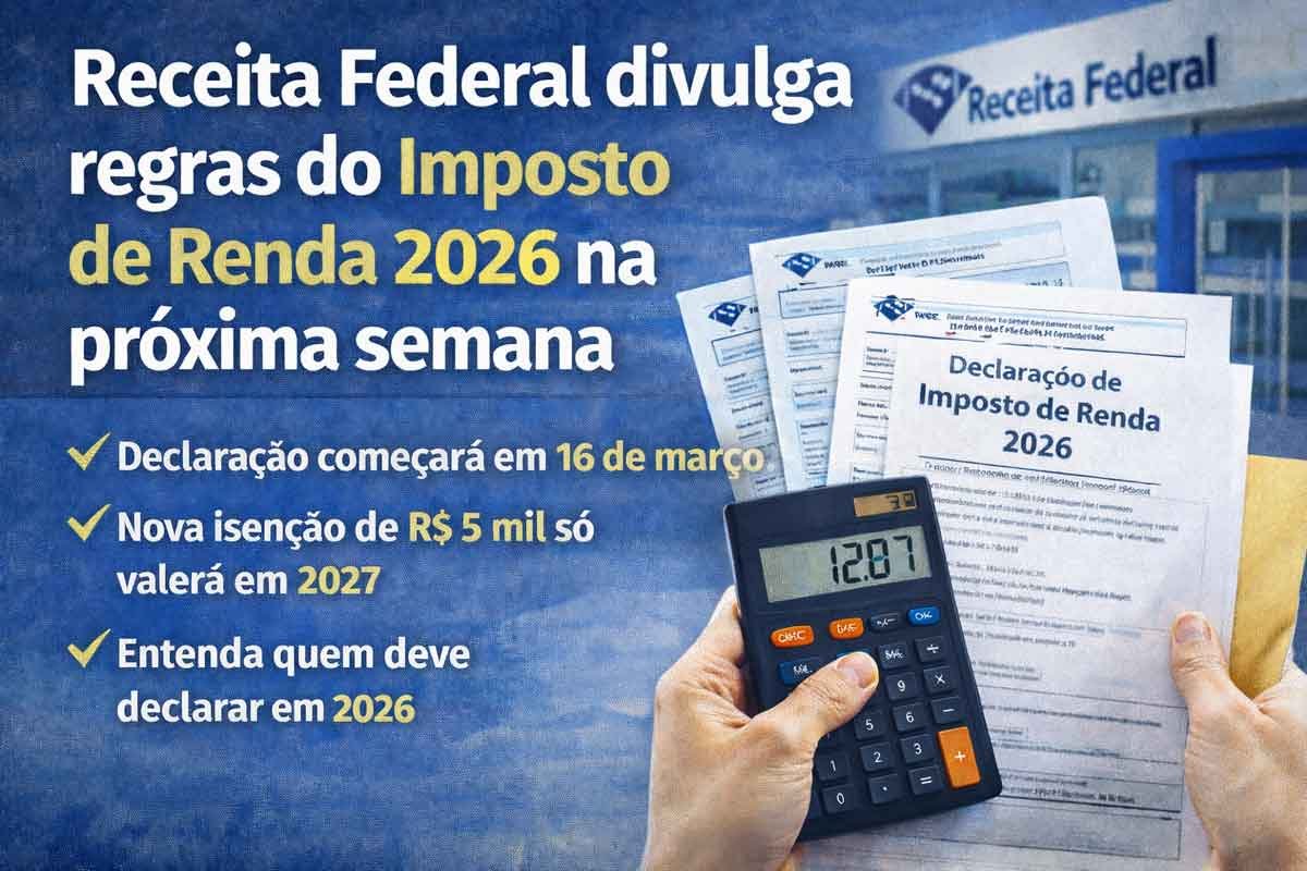 A Receita Federal deve divulgar na próxima segunda-feira (16) as regras oficiais para a Declaração do Imposto de Renda Pessoa Física (IRPF) 2026. A expectativa é que o prazo de envio comece no mesmo dia e siga até 29 de maio, último dia útil do mês, mantendo o calendário tradicional adotado nos últimos anos.