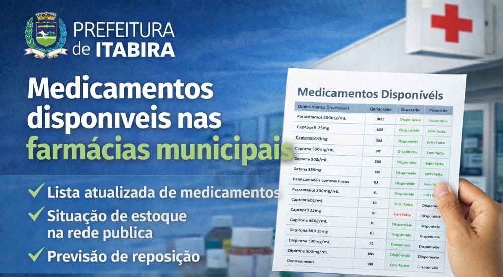 A população de Itabira conta com uma ampla rede de distribuição de medicamentos gratuitos nas unidades públicas de saúde. Conforme a Relação Municipal de Medicamentos Essenciais (REMUME) 2023/2025, são 151 itens farmacêuticos disponíveis para atendimento das diversas necessidades terapêuticas da comunidade itabirana.