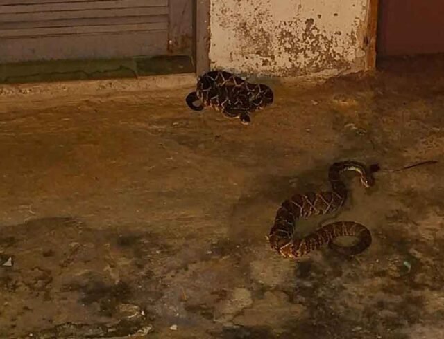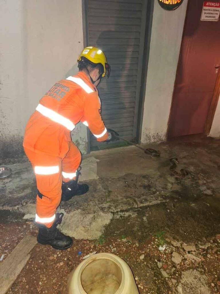 A chamada foi recebida por volta das 20h20. Ao chegarem ao local, os militares constataram a presença das duas serpentes peçonhentas na área verde do imóvel. Com equipamento de proteção e técnicas específicas para manejo de répteis, a guarnição realizou a captura em segurança.