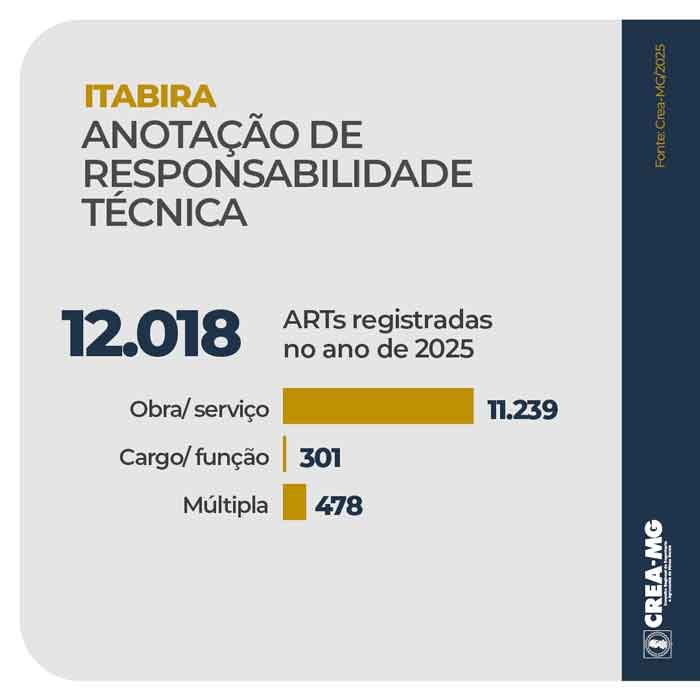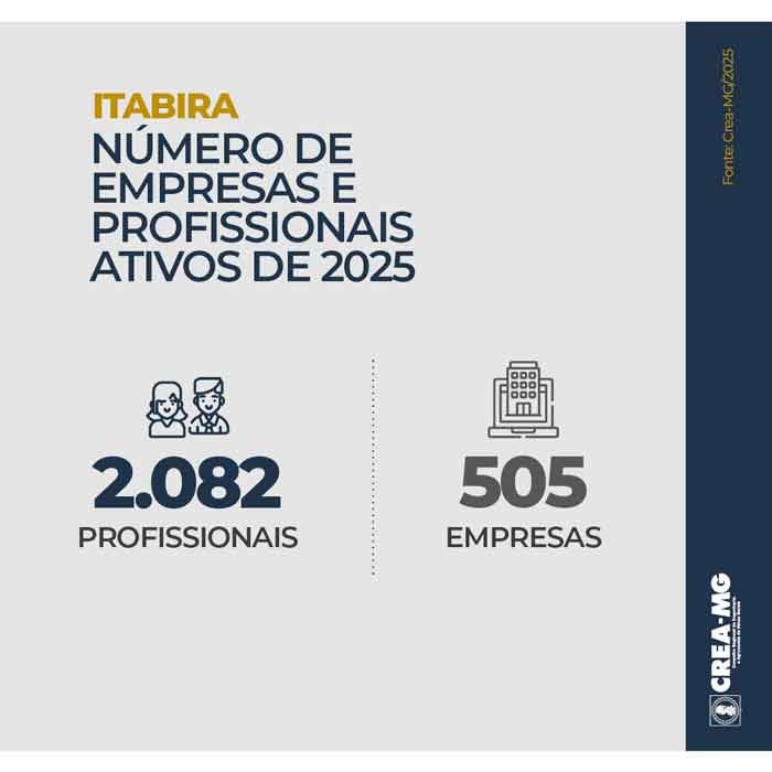 O Conselho Regional de Engenharia e Agronomia de Minas Gerais (Crea-MG) realizou, em 2025, um total de 73.864 ações de fiscalização nos 853 municípios do estado. Em Itabira, na Região Metropolitana de Belo Horizonte, foram realizadas cerca de 1.000 ações ao longo do ano, que resultaram na identificação de 89 irregularidades.