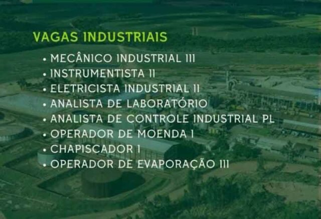 As vagas são destinadas a profissionais com experiência em áreas técnicas e operacionais, oferecendo oportunidade de crescimento em uma empresa consolidada no segmento de produção de açúcar e etanol.