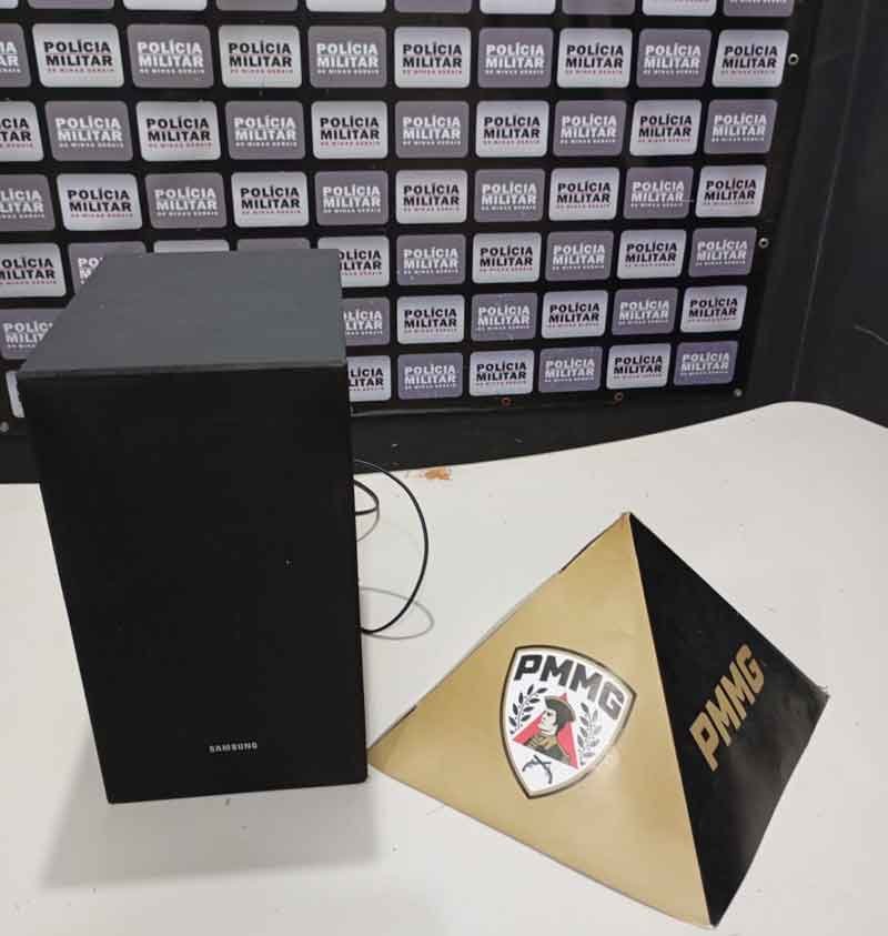 O equipamento utilizado, uma caixa de som preta da marca Samsung, foi apreendido pela Polícia Militar.