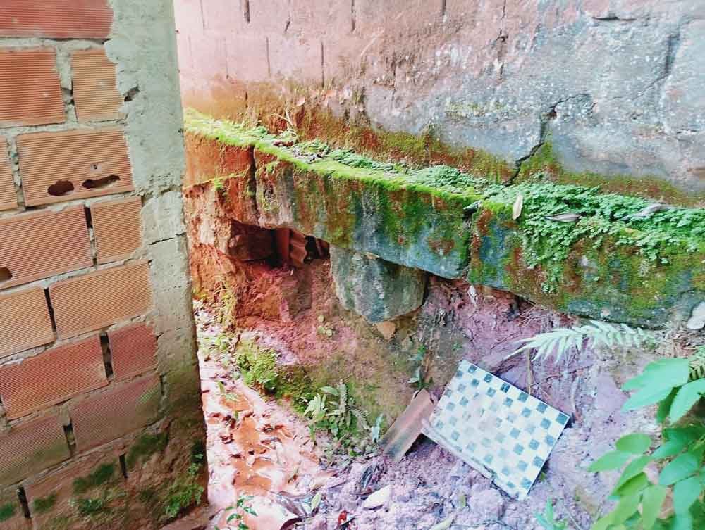 Outro fator observado pelos militares foi o fato de a entrada da residência estar em nível inferior ao da rua. Dessa forma, a água da chuva acaba escoando para dentro do imóvel e posteriormente sendo direcionada ao barranco, aumentando o processo de erosão e o risco de deslizamento.