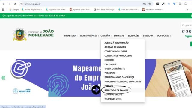 Para consultar o resultado, o cidadão deve acessar o site da Prefeitura de João Monlevade, entrar na aba “Cidadão” e clicar na opção “Resultado de Exames” ou através diretamente neste link. Após acessar a página, basta inserir os dados solicitados para visualizar o documento.