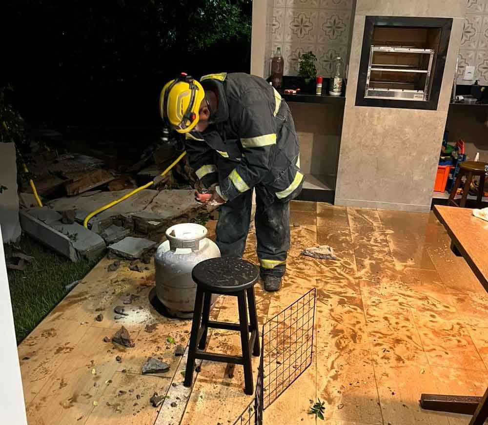 Com a queda, os destroços atingiram parte da fiação elétrica do imóvel e também uma mangueira conectada ao botijão de gás. A área foi imediatamente isolada pelos militares, que realizaram os procedimentos de segurança, incluindo a retirada do botijão para um local seguro, evitando riscos maiores.