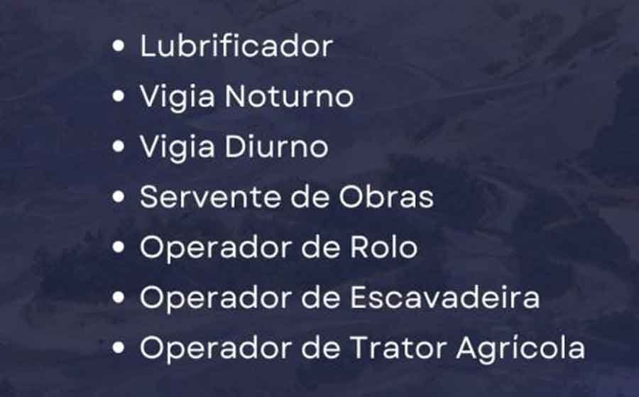 As vagas são destinadas a profissionais com diferentes níveis de experiência, principalmente na área de construção civil e operação de máquinas.