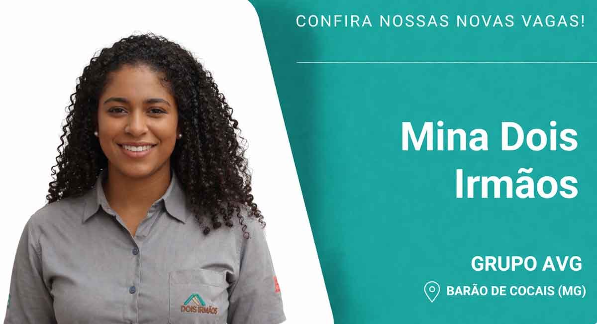 O GRUPO AVG está com processo seletivo aberto para quatro vagas de emprego na Mina Dois Irmãos, localizada em Barão de Cocais, Minas Gerais. As oportunidades contemplam diferentes níveis de formação e experiência, com benefícios atrativos e salários compatíveis com o mercado.