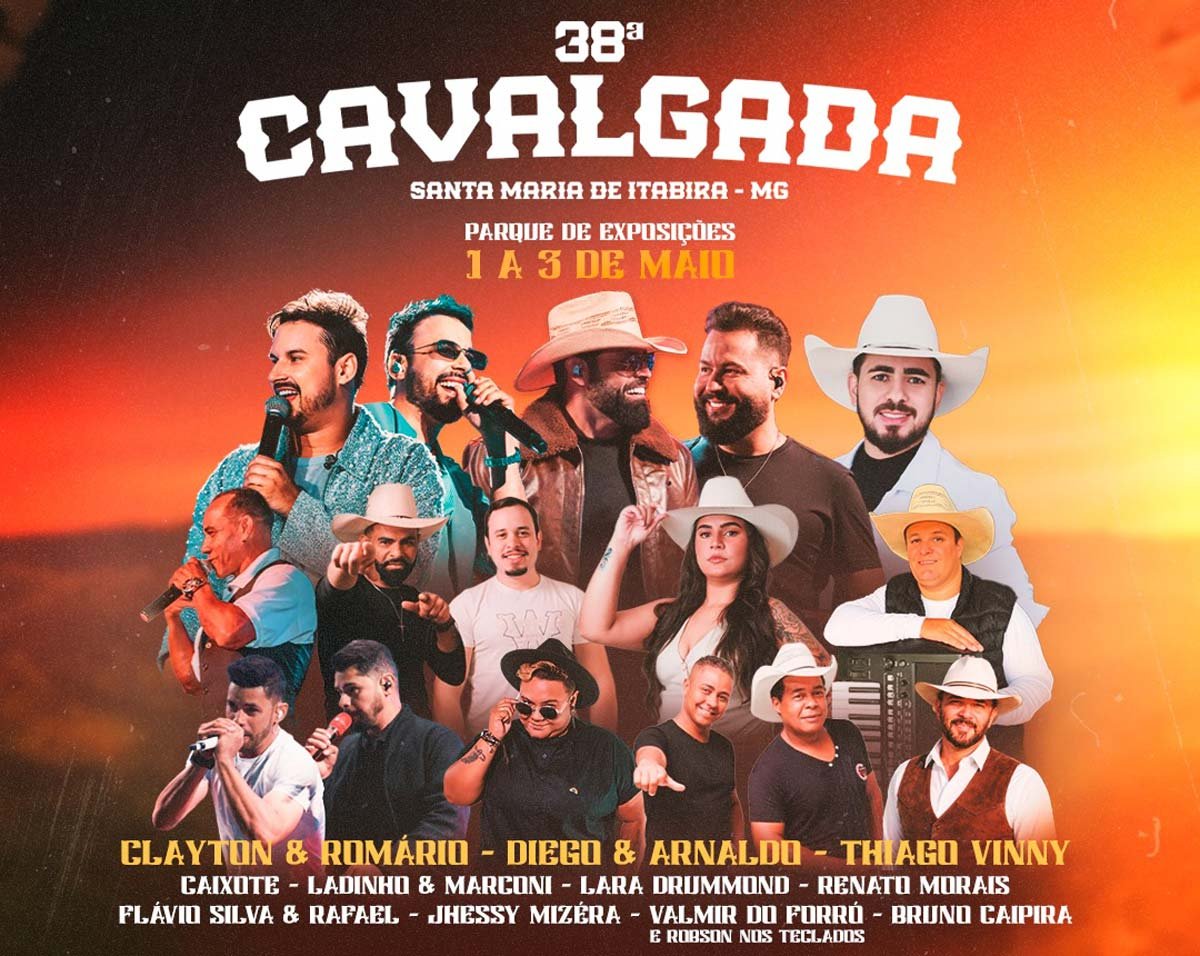 A cidade de Santa Maria de Itabira já se prepara para receber a 38ª Cavalgada, um dos eventos mais tradicionais da região. A programação acontece entre os dias 1º e 3 de maio, no Parque de Exposições, reunindo música ao vivo, concurso de marcha e atividades típicas do universo rural.