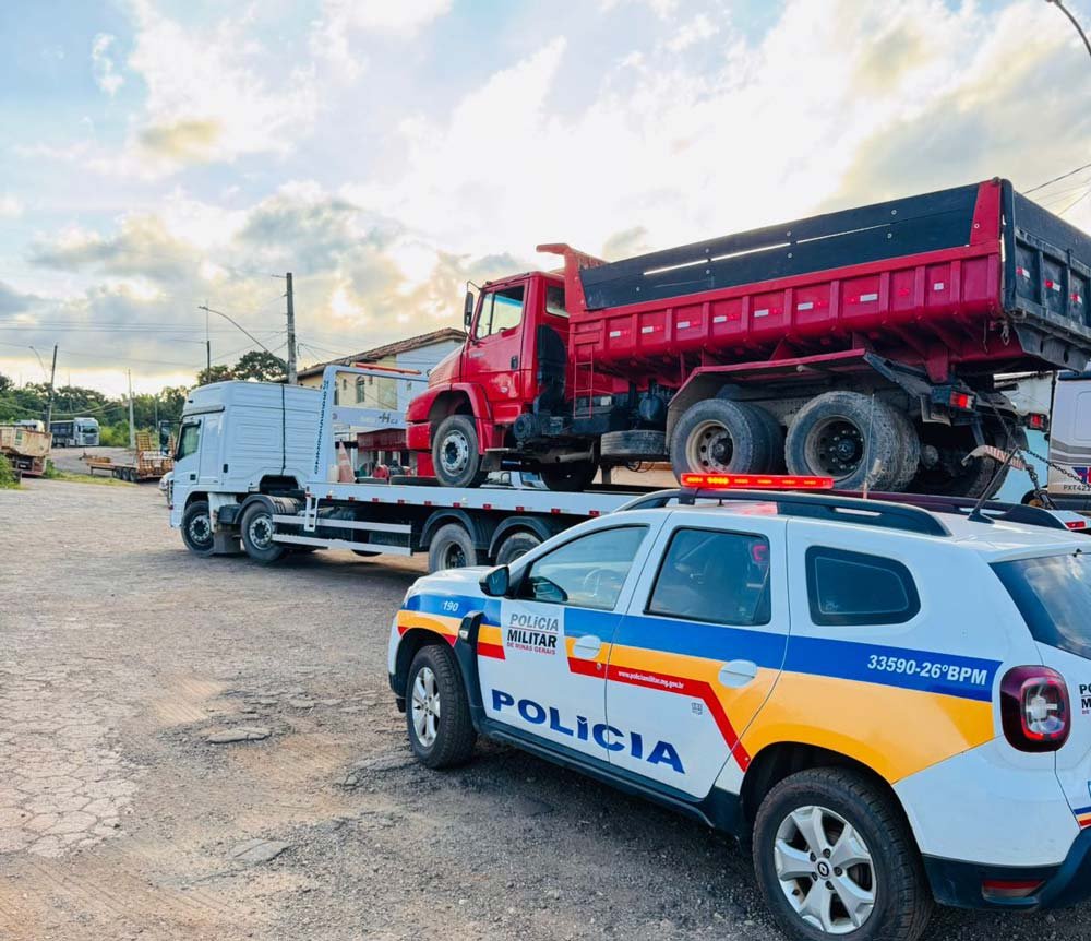 No dia 13/04/2026, por volta das 14 horas, a Polícia Militar recuperou um caminhão produto de furto e prendeu um autor por receptação, na zona rural de Bom Jesus do Amparo/MG.