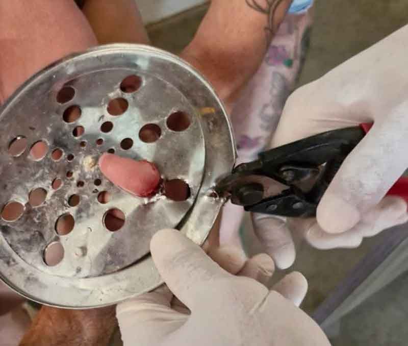 Para resolver a situação, os bombeiros utilizaram um alicate e técnicas específicas para cortar o ralo com segurança, evitando ferimentos mais graves. Após a liberação, a equipe realizou a limpeza e o curativo no dedo da criança.