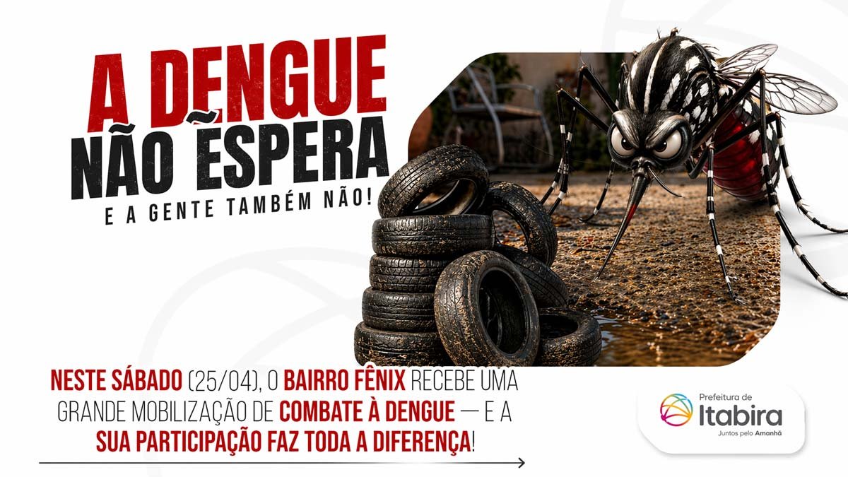 “Combater a dengue é um compromisso de todos”, reforça a mensagem da campanha da Prefeitura de Itabira. A administração municipal destaca que, além das ações do poder público, é essencial que cada cidadão faça a sua parte, eliminando focos em suas próprias residências e mantendo os quintais limpos.
