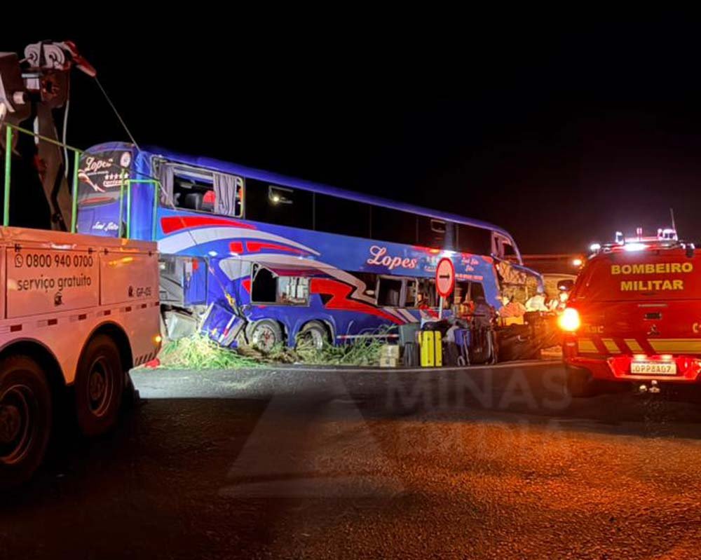 Guarnições do Oitavo Batalhão do Corpo de Bombeiros, sediado em Uberaba, foram acionadas para atender ocorrência de colisão entre um ônibus de viagem e uma carreta nesta madrugada (28/4). O acidente aconteceu na BR-050, Km 152, próximo ao posto Caxuxa. O ônibus transportava 57 passageiros – religiosos da Igreja Batista Bíblica – e tinha dois motoristas. O veículo de viagem saiu de Buritirama (BA) e seguiu para São Paulo (SP). O ônibus colidiu com uma carreta carregada de açúcar, que seguia em direção a Guará. Duas pessoas morreram no local da ocorrência, um motorista e uma passageira adulta do ônibus.
