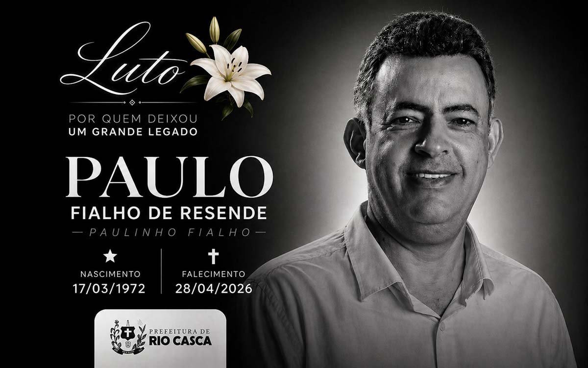 A Prefeitura de Rio Casca divulgou, nesta segunda-feira (28), uma nota oficial de pesar pelo falecimento do vice-prefeito Paulo Fialho de Resende, conhecido como Paulinho Fialho. Ele faleceu aos 54 anos, deixando uma trajetória marcada pela atuação pública e compromisso com o desenvolvimento do município.