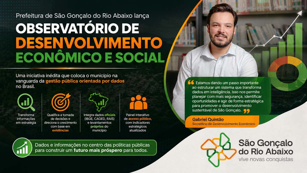 De acordo com o secretário de Desenvolvimento Econômico, Gabriel Quintão, a iniciativa representa um avanço significativo na forma de planejar o futuro do município. “Estamos dando um passo importante ao estruturar um sistema que transforma dados em inteligência. Isso nos permite planejar com mais segurança, identificar oportunidades e agir de forma estratégica para promover o desenvolvimento sustentável de São Gonçalo”, destacou.